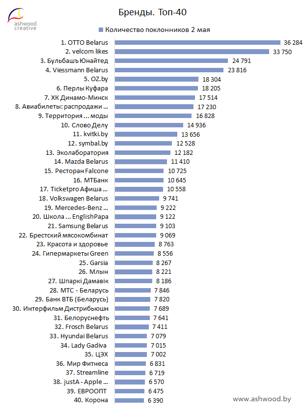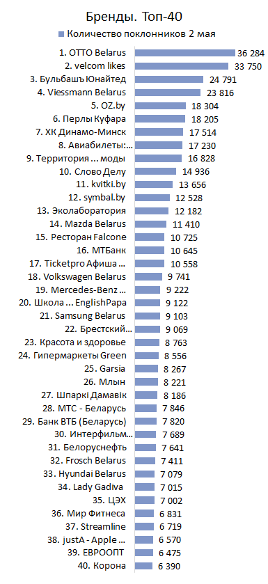 БРЕНДЫ. Топ-40 по количеству поклонников