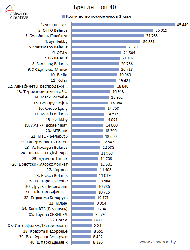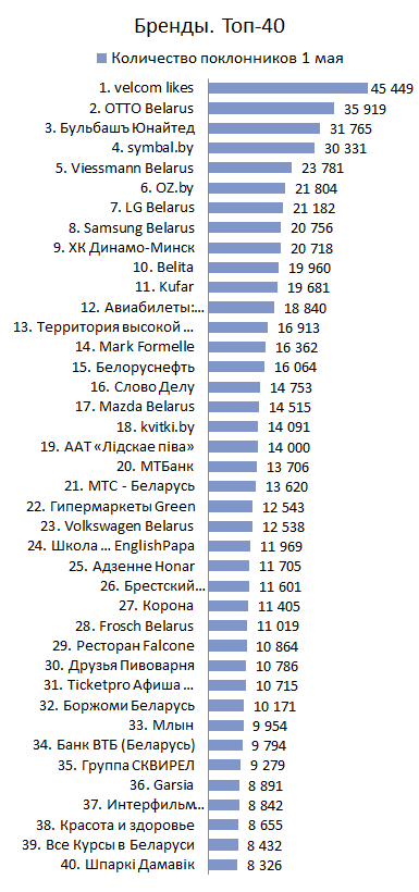 БРЕНДЫ. Топ-40 по количеству поклонников
