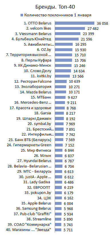 БРЕНДЫ. Топ-40 по количеству поклонников
