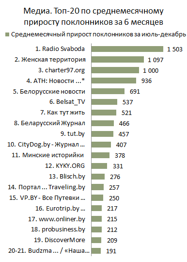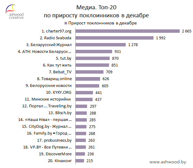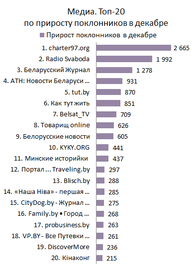 МЕДИА. Топ-20 по приросту поклонников за декабрь