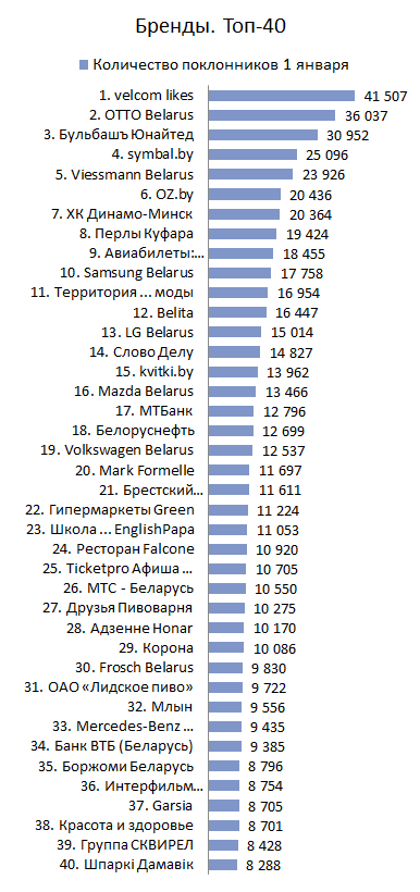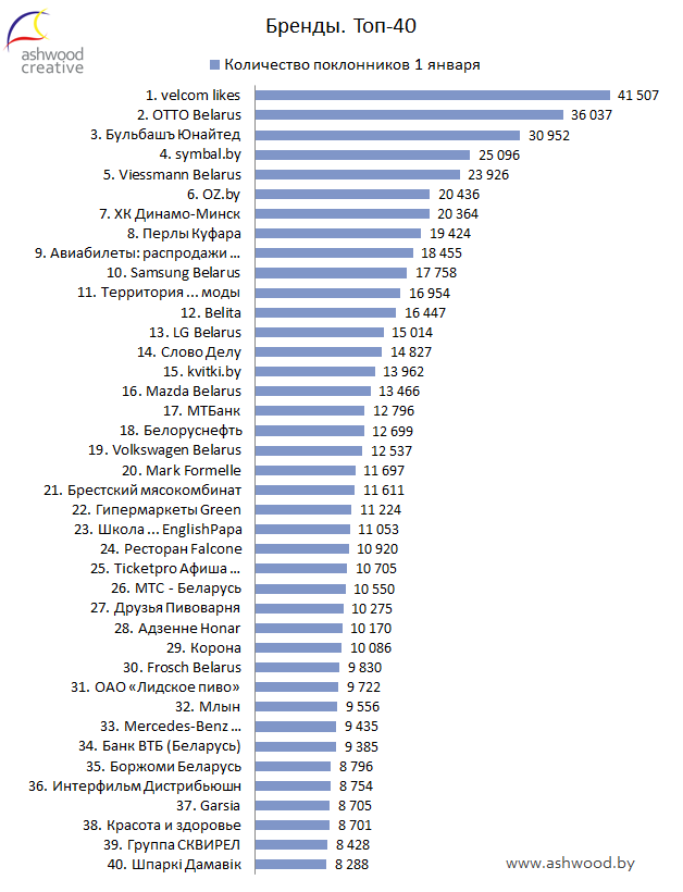 БРЕНДЫ. Топ-40 по количеству поклонников