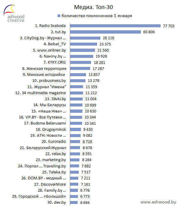 МЕДИА. Топ-30 по количеству поклонников