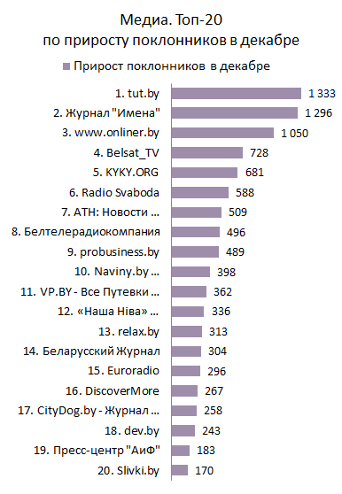 МЕДИА. Топ-20 по приросту поклонников за декабрь