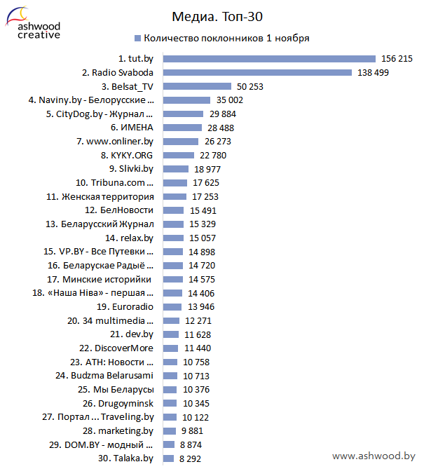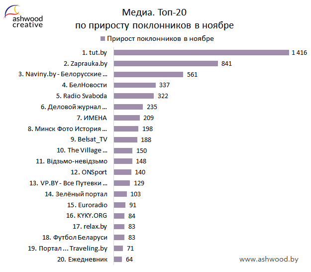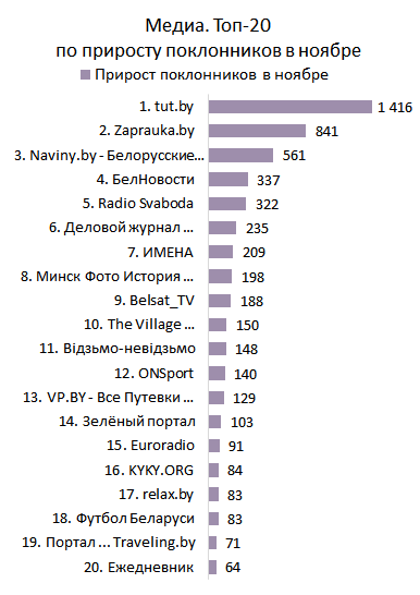 Рейтинг белорусских страниц Facebook за ноябрь 2018.