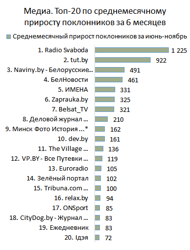 В рейтинге участвуют страницы, продвигаемые в Беларуси и не попадают те, которые подозреваются или уличены в использовании ботов, а также страницы, продвигаемые за пределами Беларуси*.