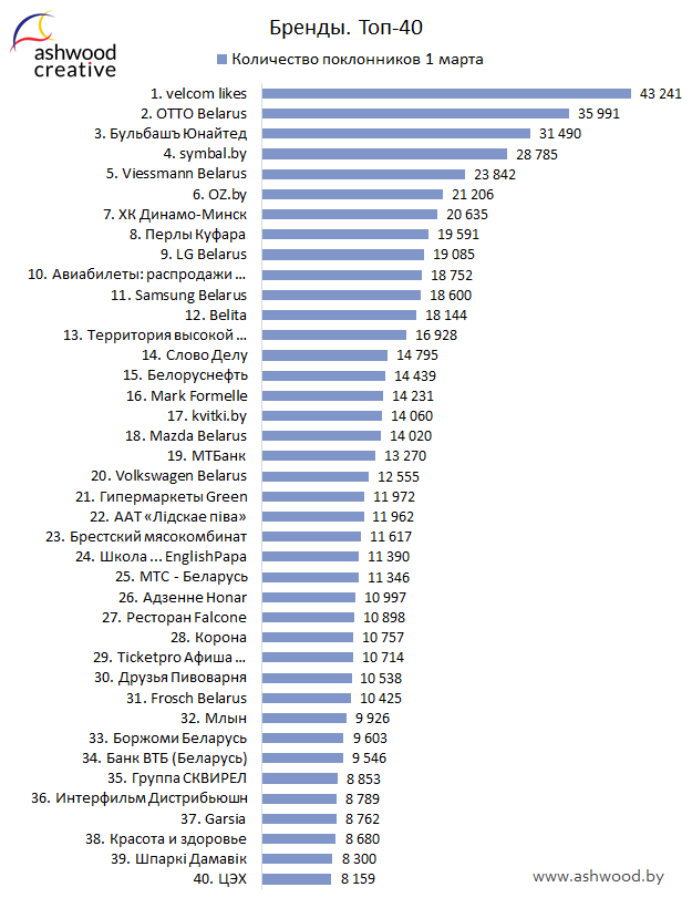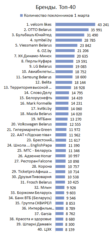 БРЕНДЫ. Топ-40 по количеству поклонников
