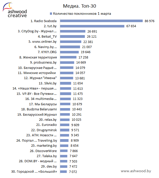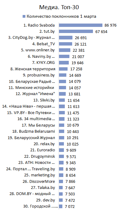 МЕДИА. Топ-30 по количеству поклонников