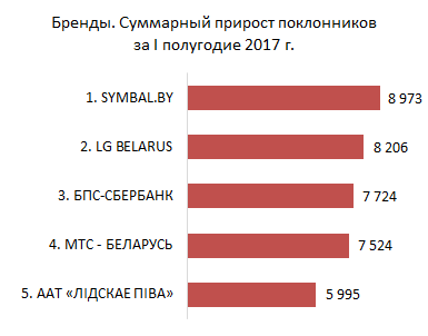 Кто же стал лучшим по приросту в I полугодии 2017-го? Из старичков среди Брендов в этот раз осталась только страница «symbal.by», вырвавшаяся на первое место. А страница «velcom», все предыдущие годы входившая в Топ, вовсе не попала в пятерку.
