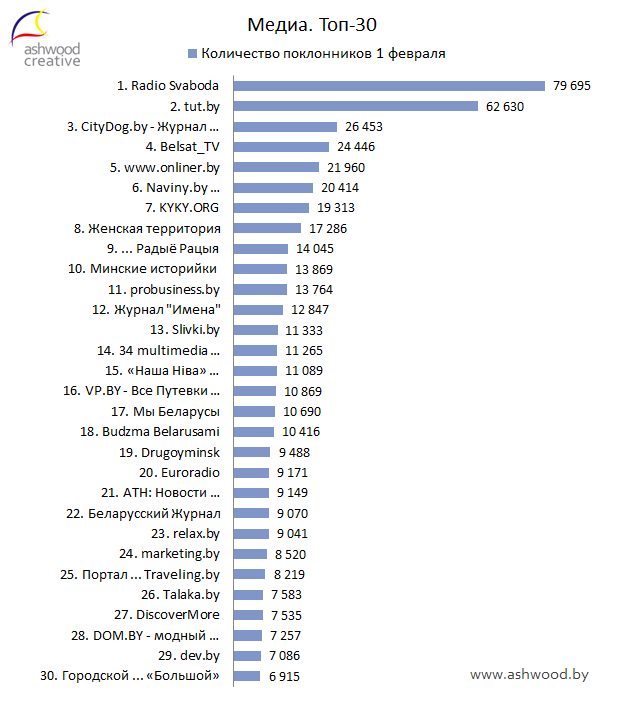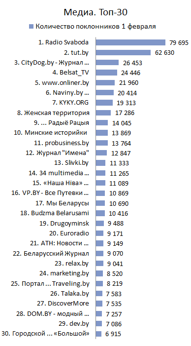 МЕДИА. Топ-30 по количеству поклонников