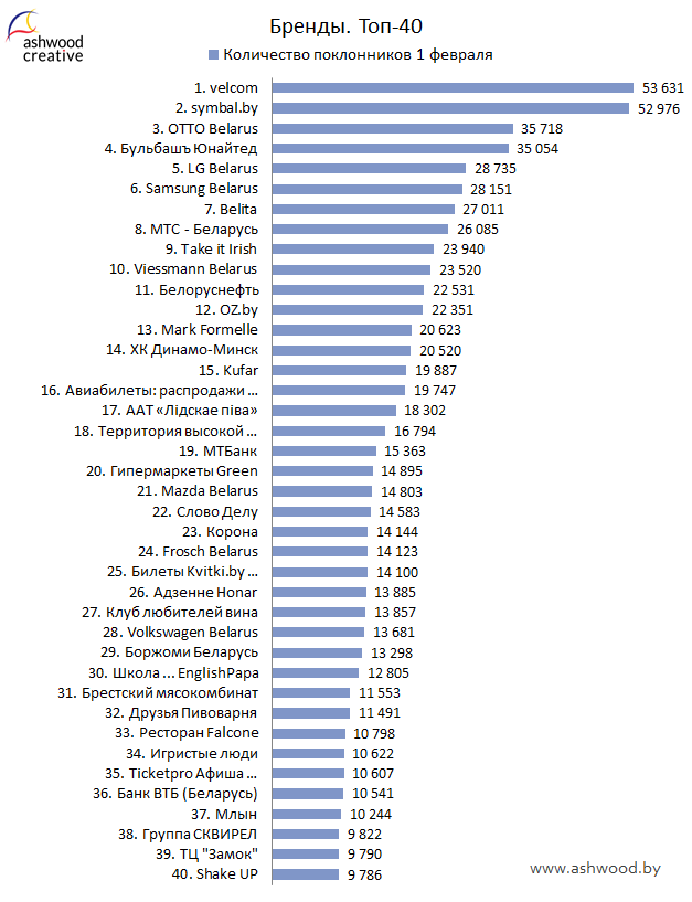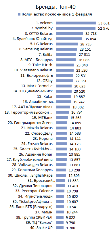 БРЕНДЫ. Топ-40 по количеству поклонников