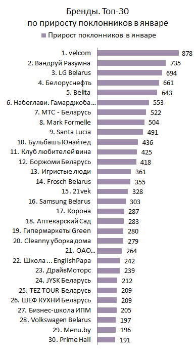 БРЕНДЫ. Топ-30 по приросту поклонников за январь