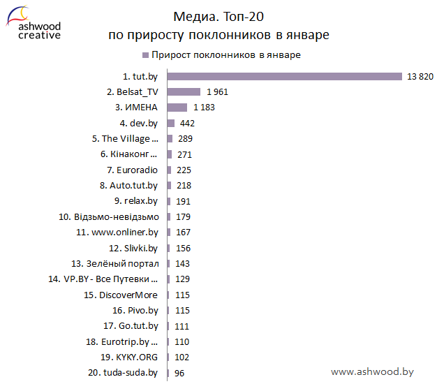 МЕДИА. Топ-20 по приросту поклонников за январь