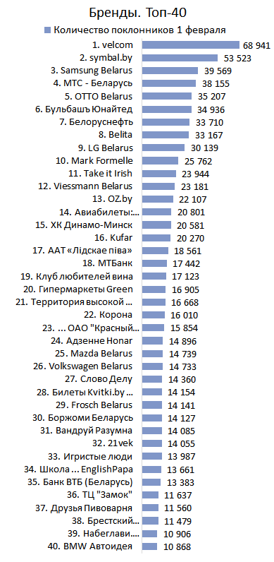 БРЕНДЫ. Топ-40 по количеству поклонников