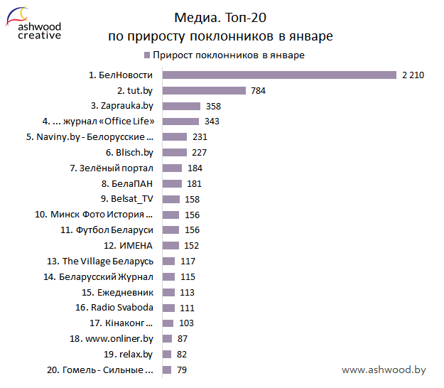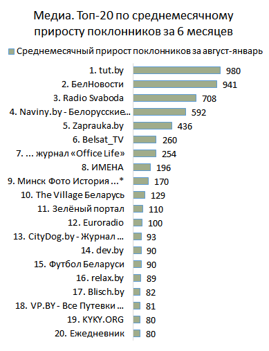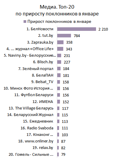МЕДИА. Топ-20 по приросту поклонников за январь