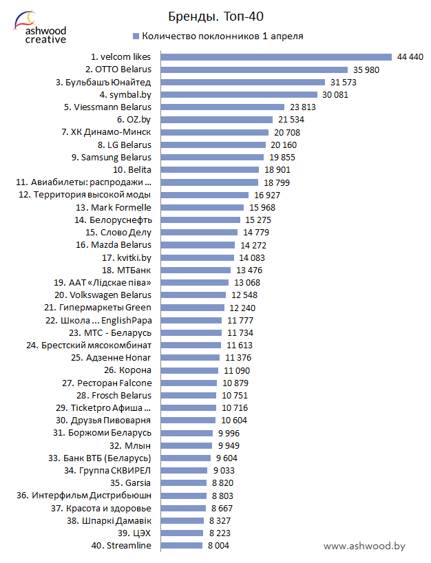 БРЕНДЫ. Топ-40 по количеству поклонников