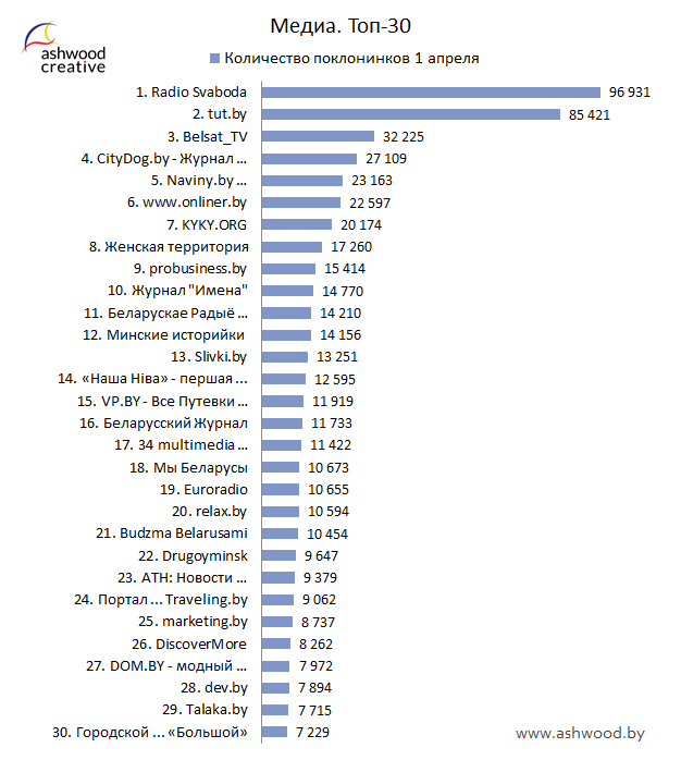 МЕДИА. Топ-30 по количеству поклонников