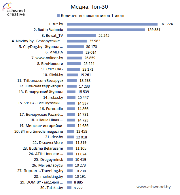 МЕДИА. Топ-30 по количеству поклонников
