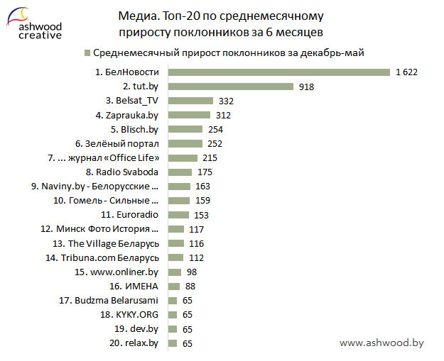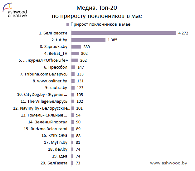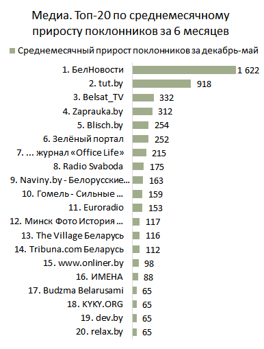 МЕДИА. Топ-20 по приросту поклонников за Май