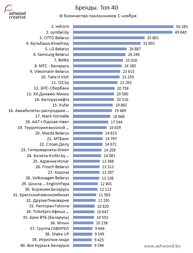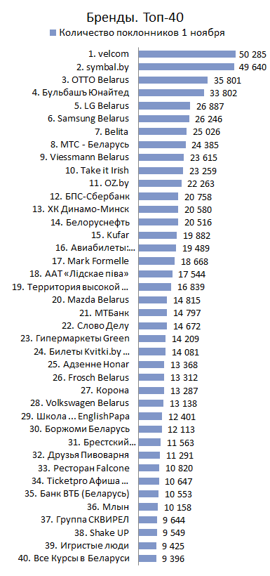 БРЕНДЫ. Топ-40 по количеству поклонников