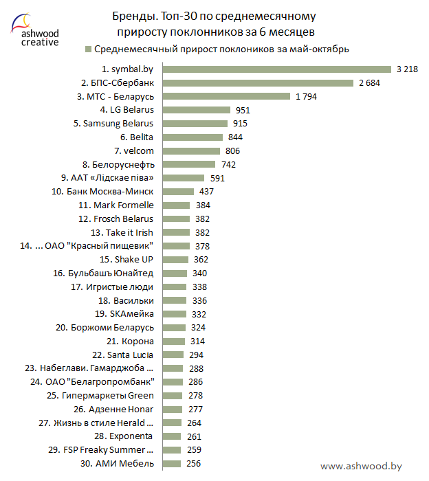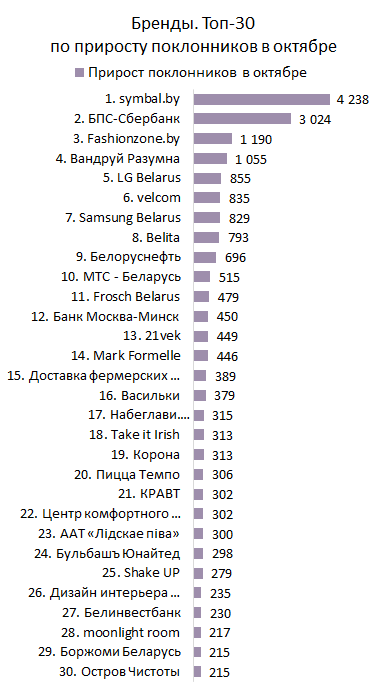 БРЕНДЫ. Топ-30 по приросту поклонников за октябрь
