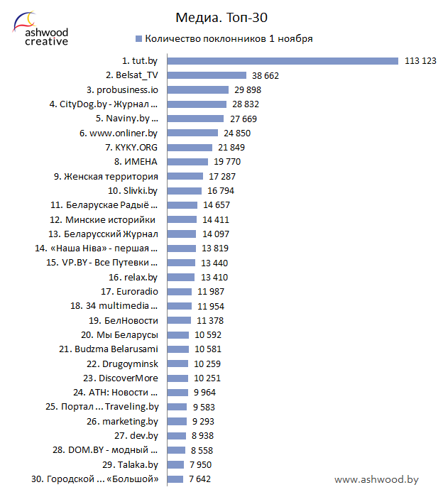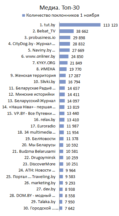 МЕДИА. Топ-30 по количеству поклонников