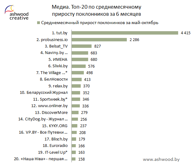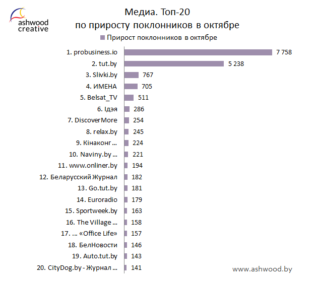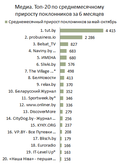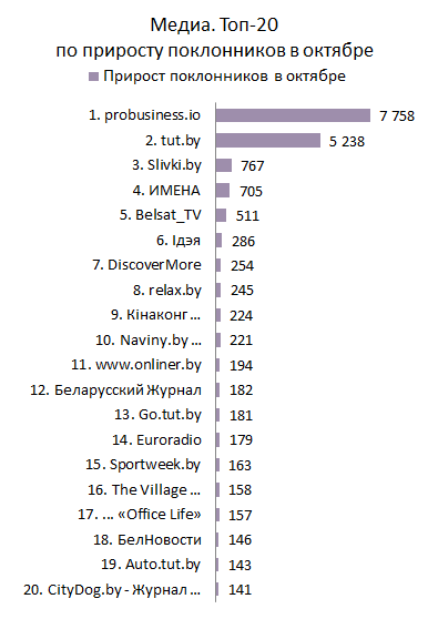 МЕДИА. Топ-20 по приросту поклонников за октябрь