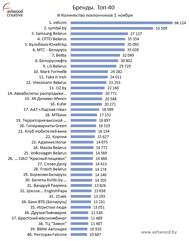 БРЕНДЫ. Топ-40 по количеству поклонников