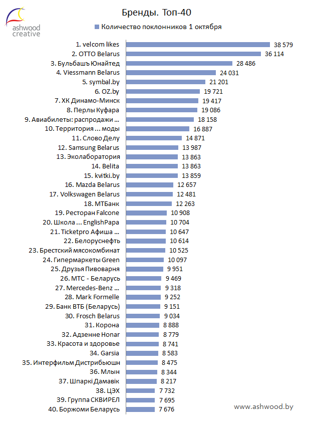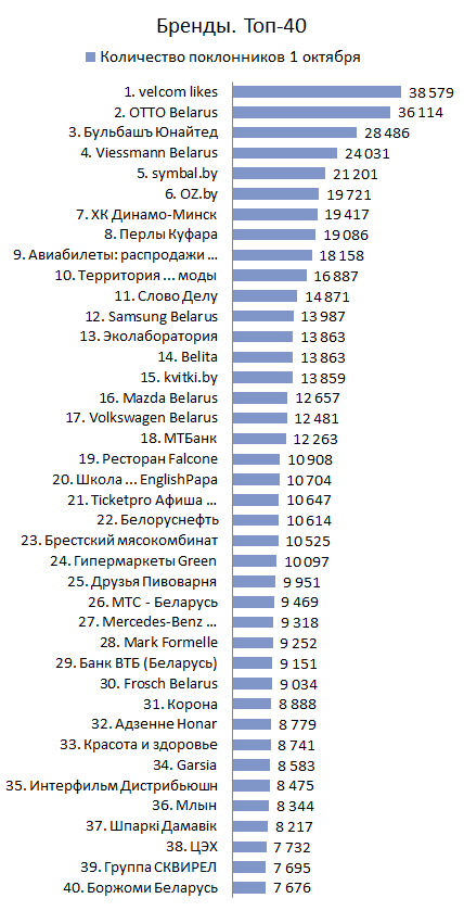 БРЕНДЫ. Топ-40 по количеству поклонников
