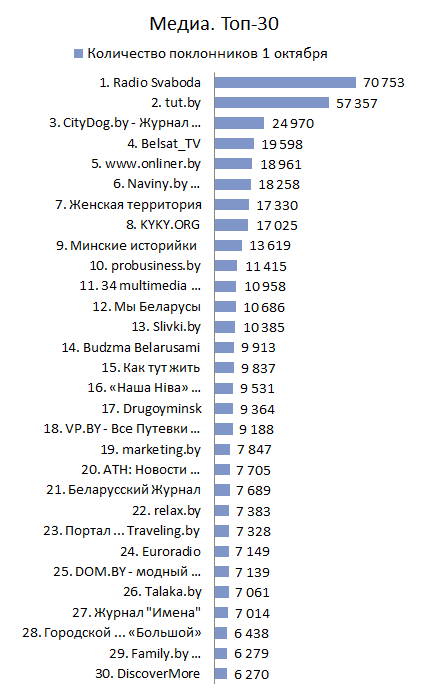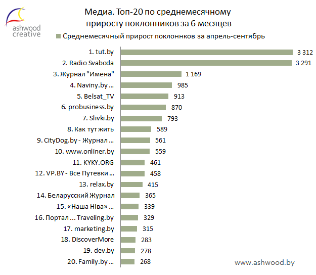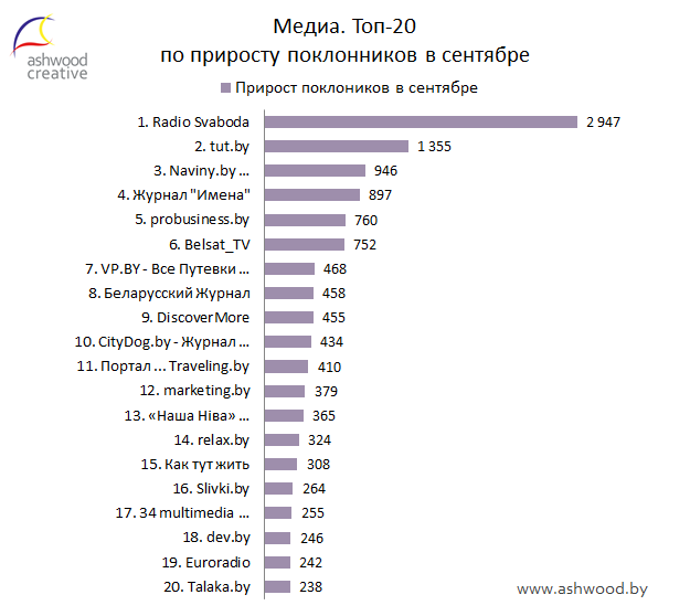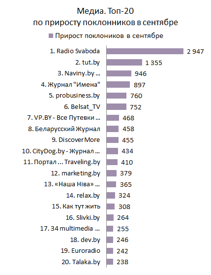 МЕДИА. Топ-20 по приросту поклонников за сентябрь