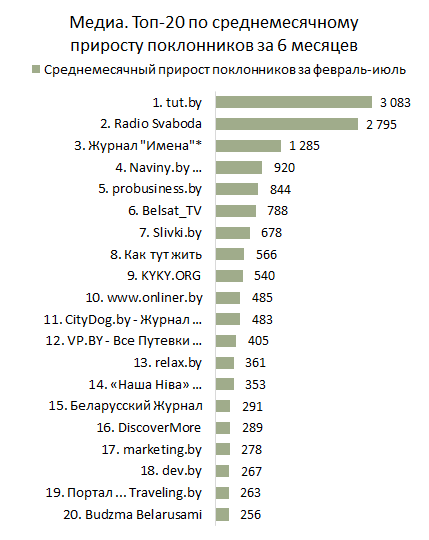 МЕДИА. Топ-20 по среднемесячному приросту за полугодие